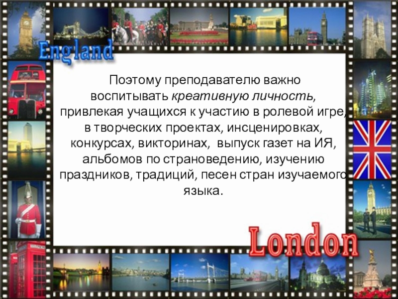 Слайд 7 Поэтому преподавателю важно воспитывать креативную личность, привлекая учащихся к