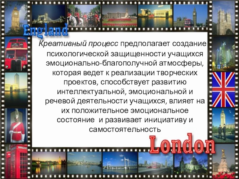Слайд 4 Креативный процесс предполагает создание психологической защищенности учащихся эмоционально-благополучной атмосферы, которая ведет к