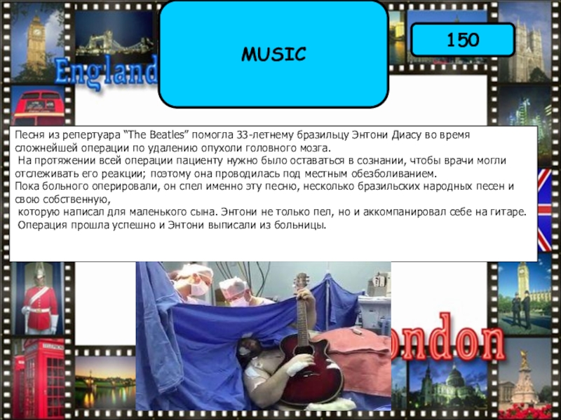 Пока больного оперировали, он спел именно эту песню, несколько бразильских народных песен и свою собственную,