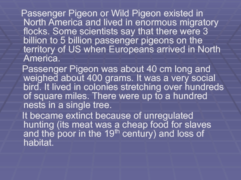 Слайд 9 Passenger Pigeon or Wild Pigeon existed in North America