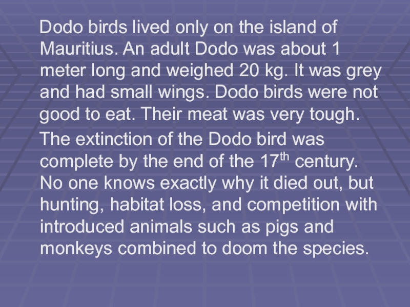 Слайд 6 Dodo birds lived only on the island of Mauritius.