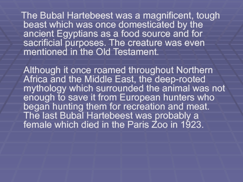 Слайд 16 The Bubal Hartebeest was a magnificent, tough beast which