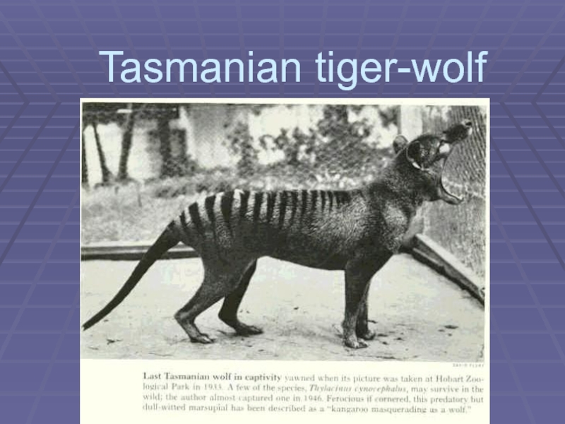 Слайд 3 Tasmanian tiger-wolf is an extinct wolf like carnivorous marsupial of