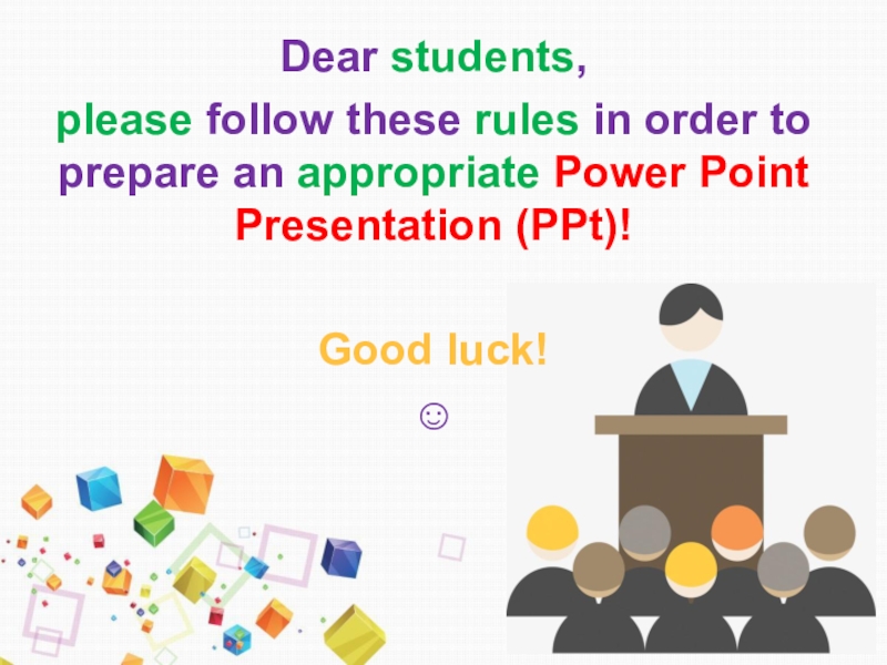 Это сайт презентаций, где можно хранить и обмениваться своими презентациями, докладами, проектами, шаблонами в формате PowerPoint с другими пользователями. Мы помогаем школьникам, студентам, учителям, преподавателям хранить и обмениваться учебными материалами.