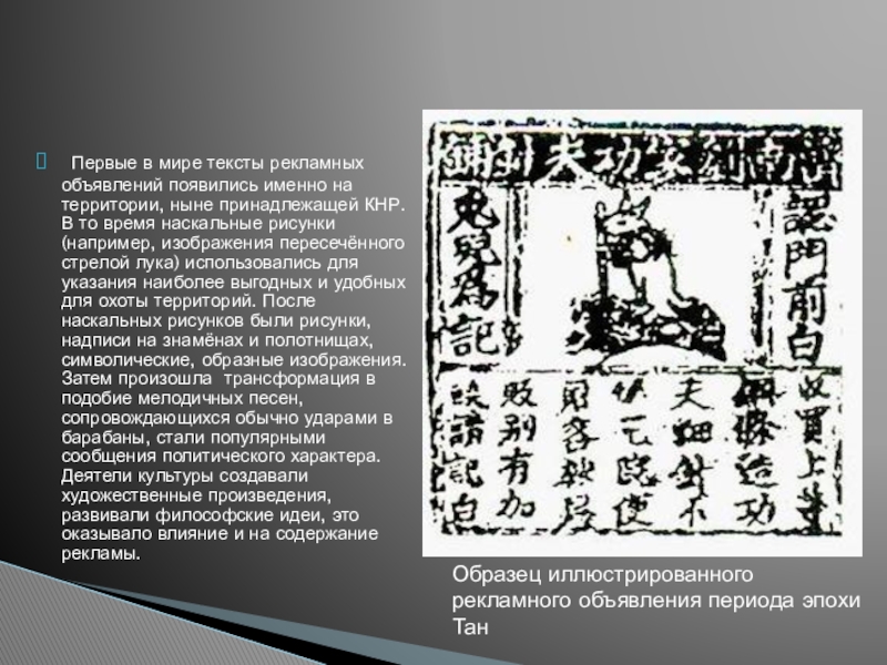 Образец иллюстрированного рекламного объявления периода эпохи Тан