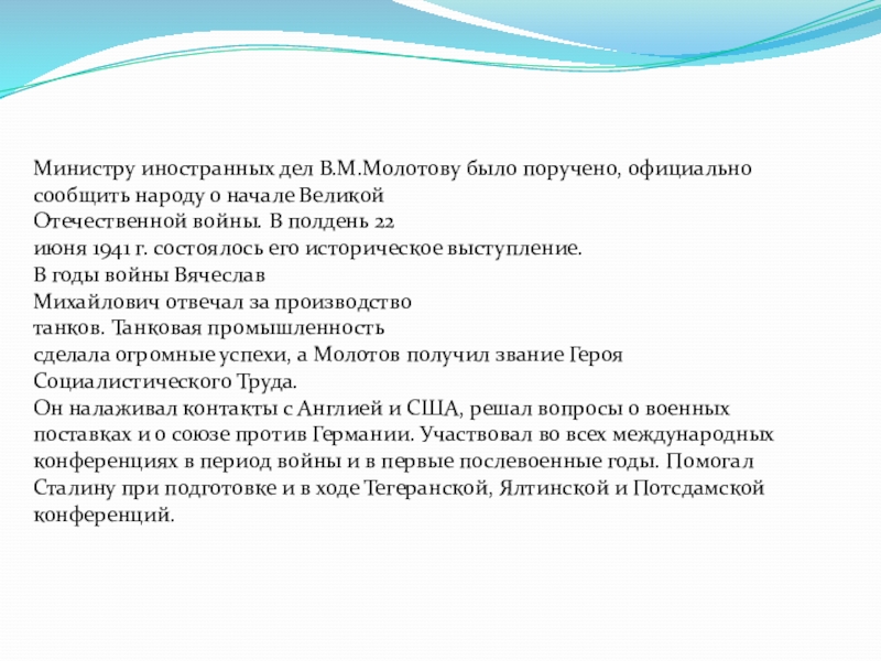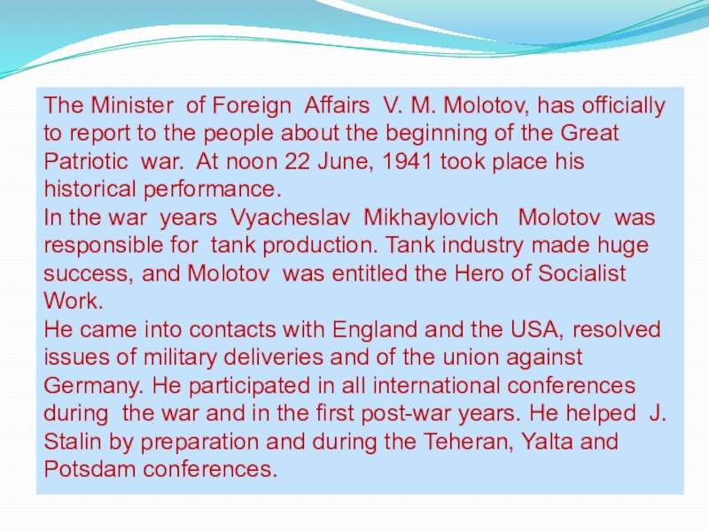 Слайд 4The Minister of Foreign Affairs V. M. Molotov, has officially to