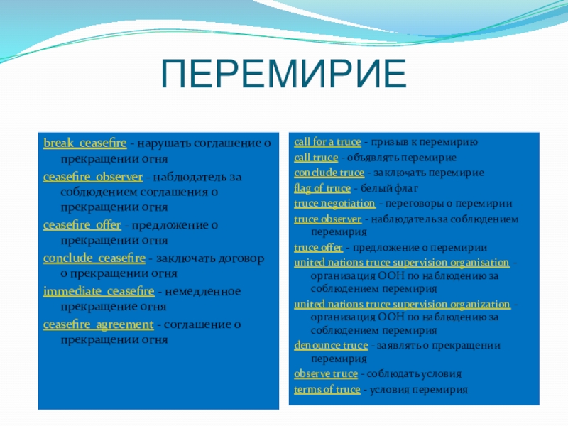 ceasefire agreement - соглашение о прекращении огня