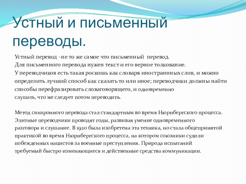 Слайд 9Устный и письменный переводы.