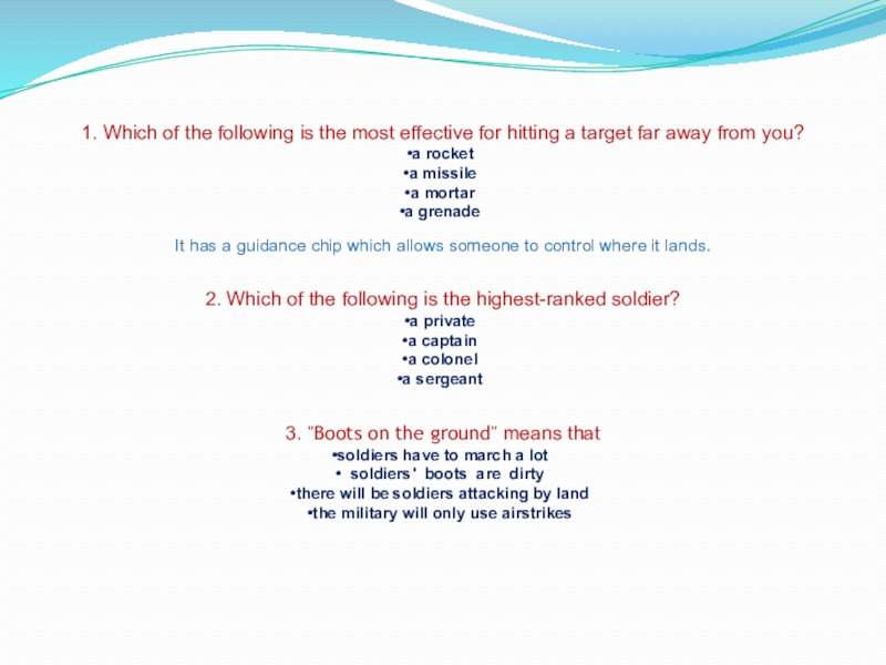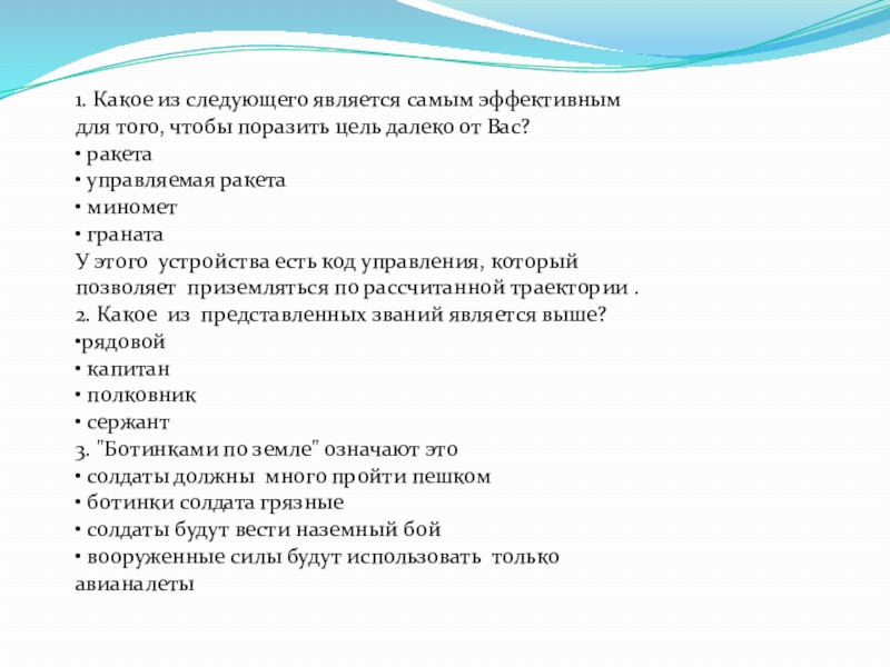 Слайд 131. Какое из следующего является самым эффективным для того, чтобы поразить