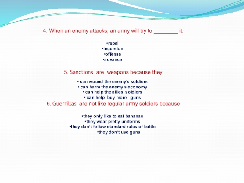 Слайд 144. When an enemy attacks, an army will try to ________