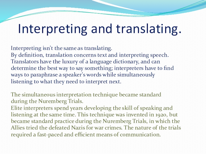 Слайд 8Interpreting and translating.