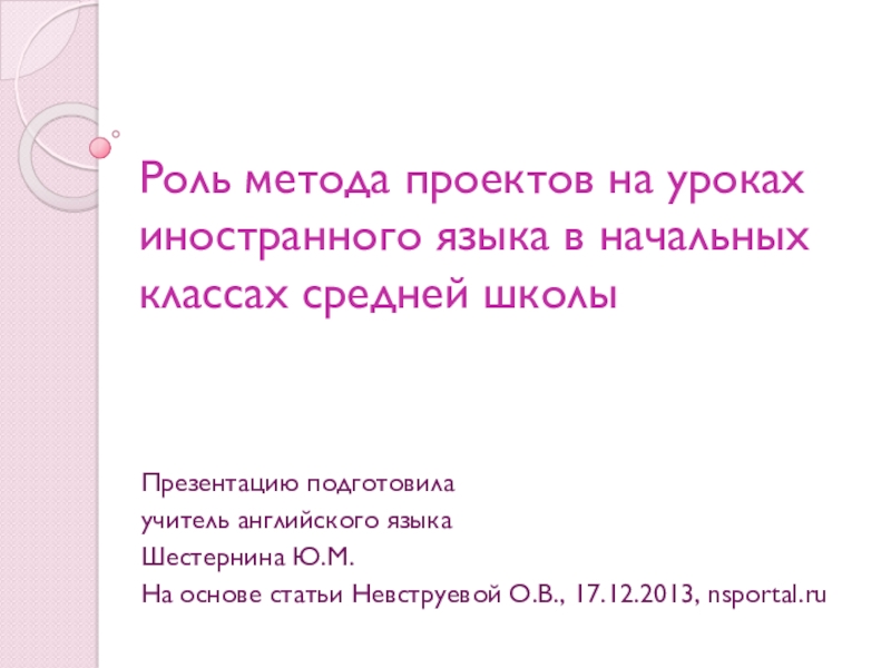 На основе статьи Невструевой О.В., 17.12.2013, nsportal.ru