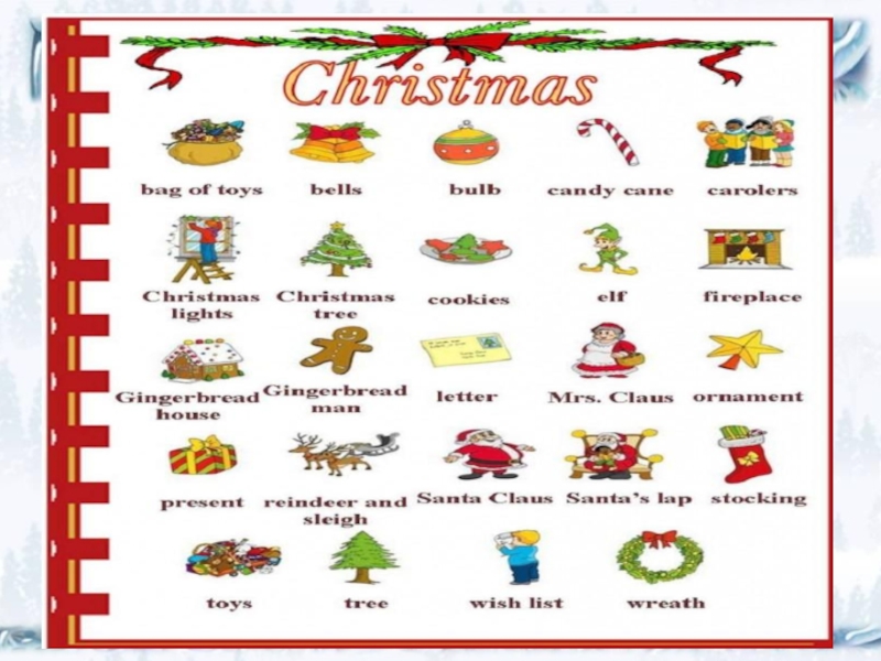 4.This word starts with an “H”. This plant is another symbol of the season. It has red berries and shiny leaves with sharp points. What is it called? (Holly)