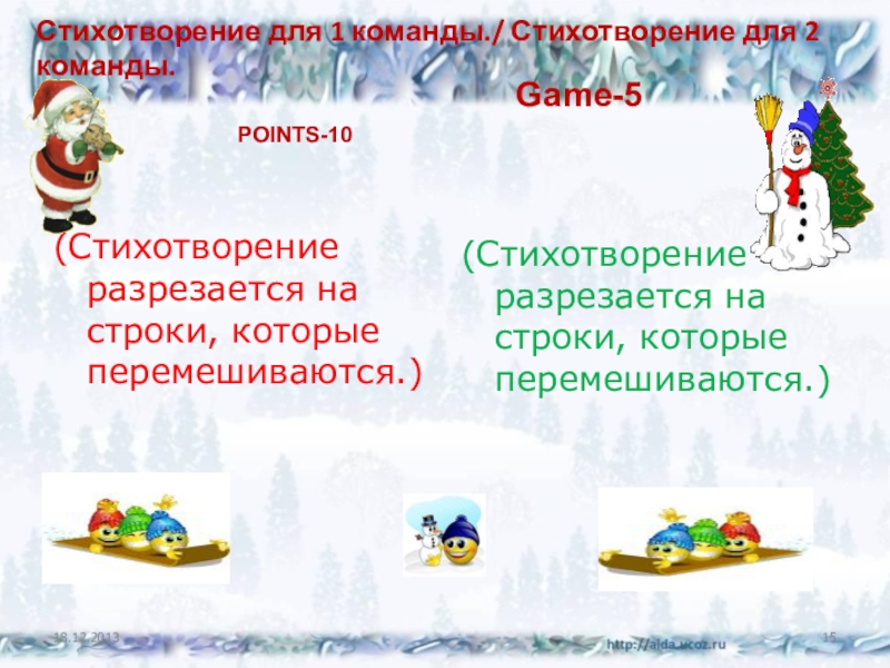(Стихотворение разрезается на строки, которые перемешиваются.)