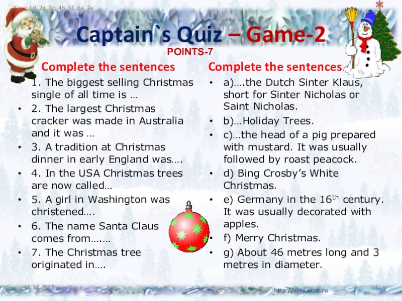 5.This word starts with a “C”. Many people send these paper items to their friends and family at Christmas time, with a note of friendship and good wishes. What is one of these called? (Christmas card)