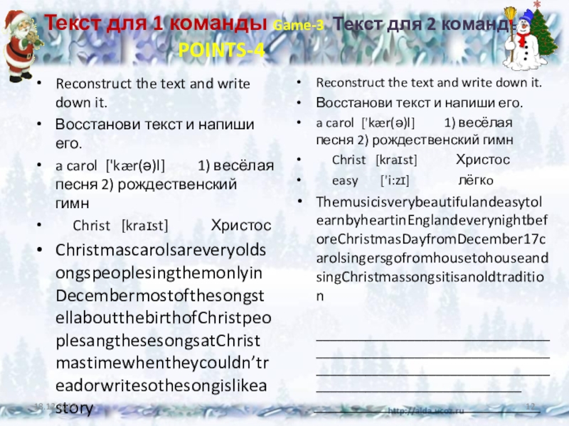 ChristmascarolsareveryoldsongspeoplesingthemonlyinDecembermostofthesongstellaboutthebirthofChristpeoplesangthesesongsatChristmastimewhentheycouldn’treadorwritesothesongislikeastory