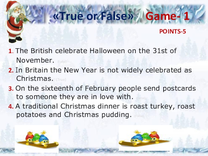 1. The British celebrate Halloween on the 31st of November. (False)