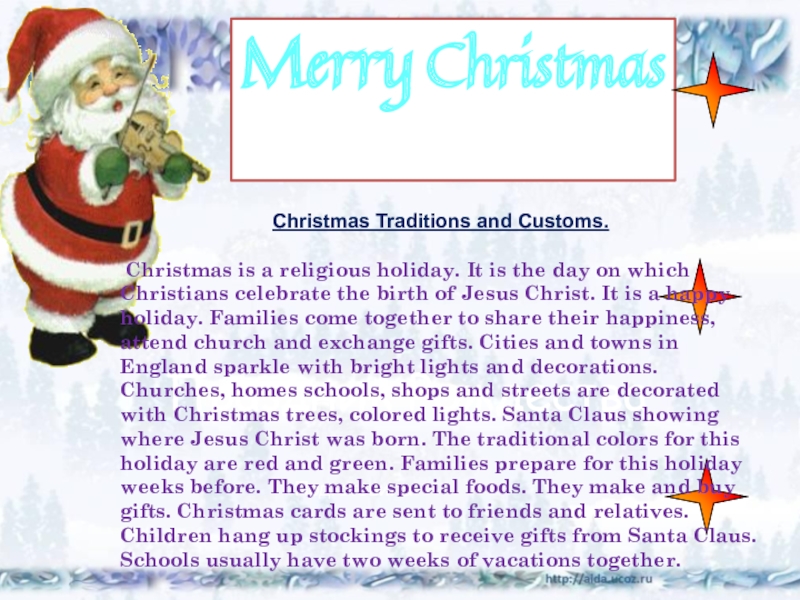 ThemusicisverybeautifulandeasytolearnbyheartinEnglandeverynightbeforeChristmasDayfromDecember17carolsingersgofromhousetohouseandsingChristmassongsitisanoldtradition