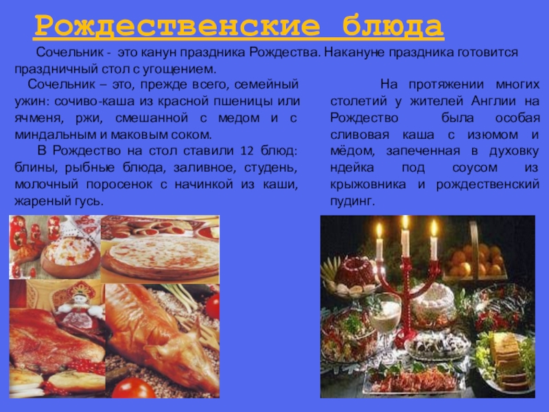 Сочельник - это канун праздника Рождества. Накануне праздника готовится праздничный стол с угощением.