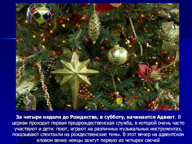 Слайд 20За четыре недели до Рождества в Германии наступает самое красивое и