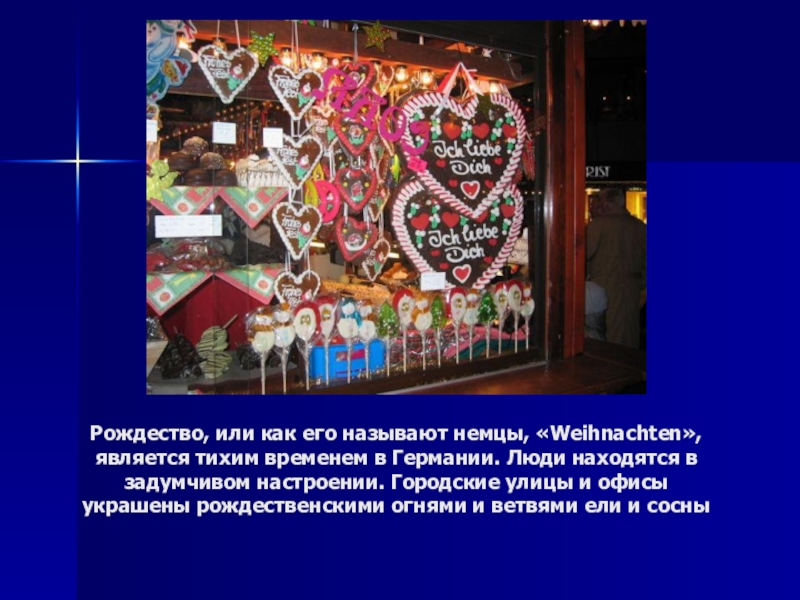 Слайд 23Рождество или Святая Ночь (Weihnachten) в Германии проходит спокойно, в кругу