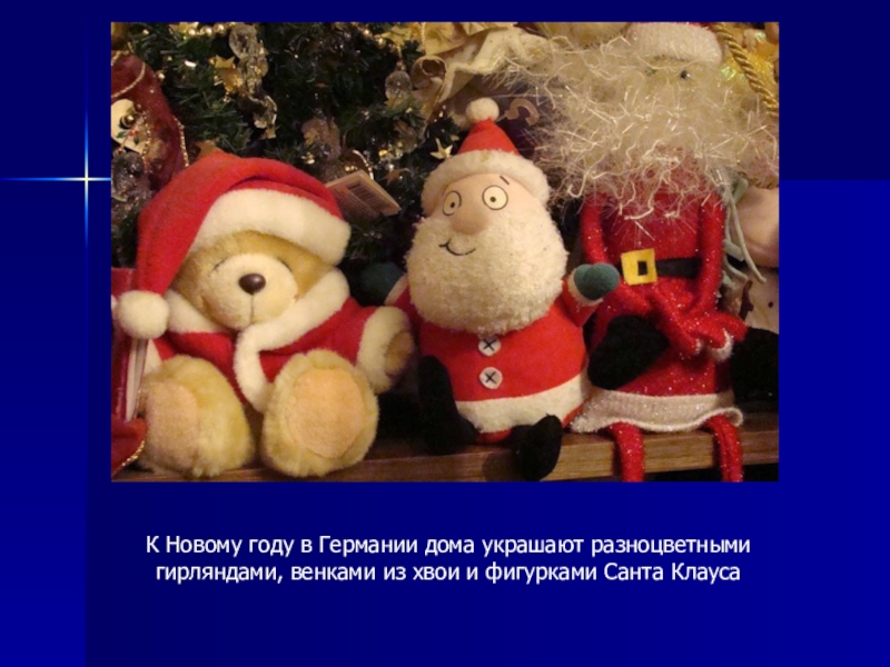 Слайд 17К Новому году в Германии дома украшают разноцветными гирляндами, венками из