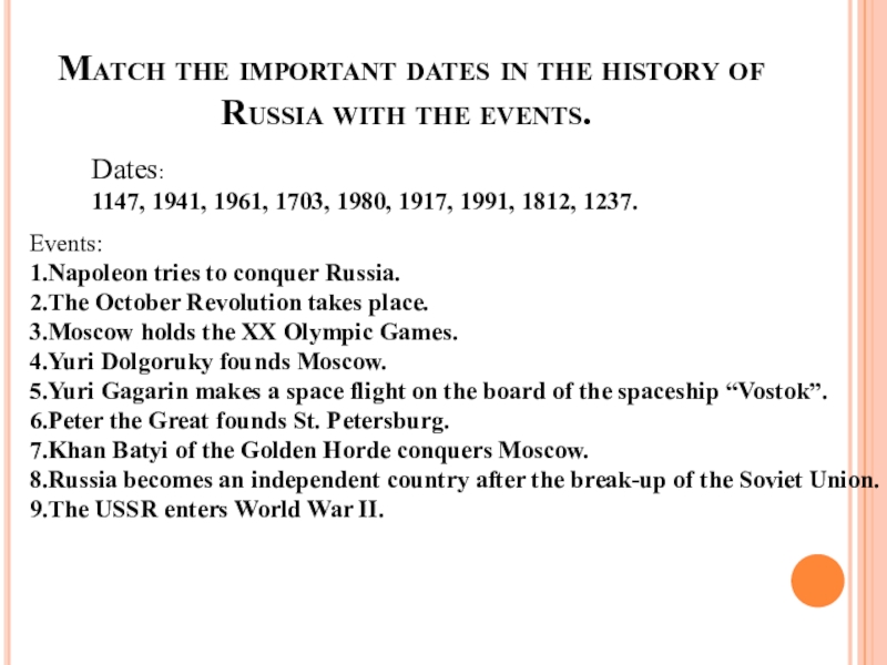 8.Russia becomes an independent country after the break-up of the Soviet Union.