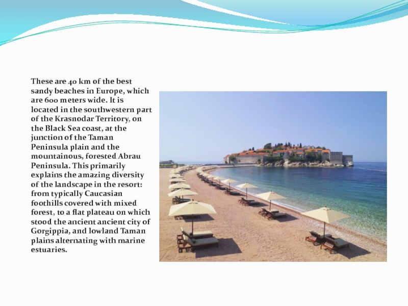 Слайд 4These are 40 km of the best sandy beaches in Europe,