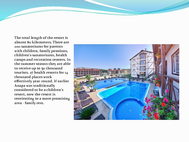 The total length of the resort is almost 80 kilometers. There are 200 sanatoriums for parents with