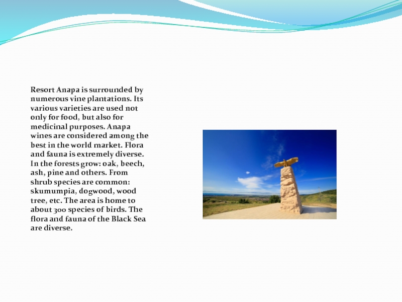 Слайд 3 Resort Anapa is surrounded by numerous vine plantations. Its various varieties