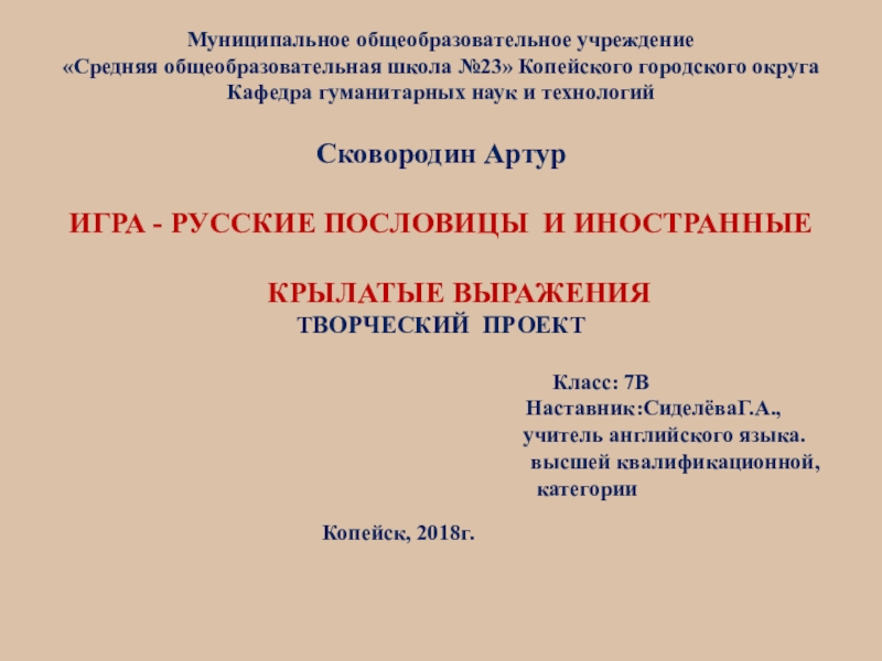 РУССКИЕ ПОСЛОВИЦЫ И ИНОСТРАННЫЕ КРЫЛАТЫЕ ВЫРАЖЕНИЯ