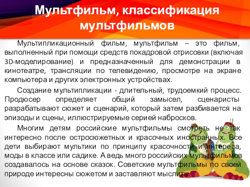 Мультипликационный фильм, мультфильм – это фильм, выполненный при
