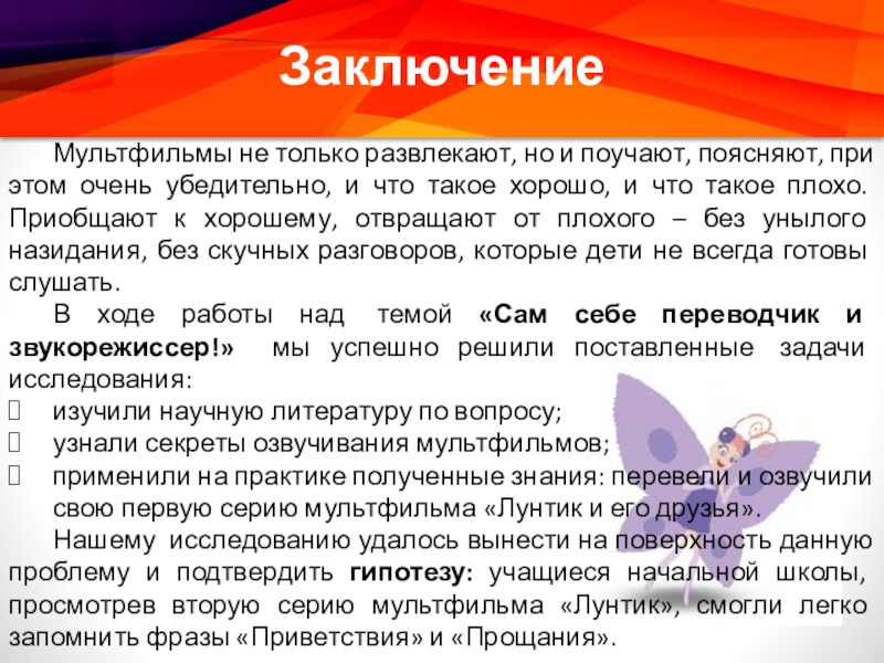 В ходе работы над темой «Сам себе переводчик и звукорежиссер!» мы успешно решили поставленные задачи исследования: