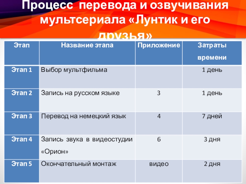 Слайд 11Процесс перевода и озвучивания мультсериала «Лунтик и его друзья»