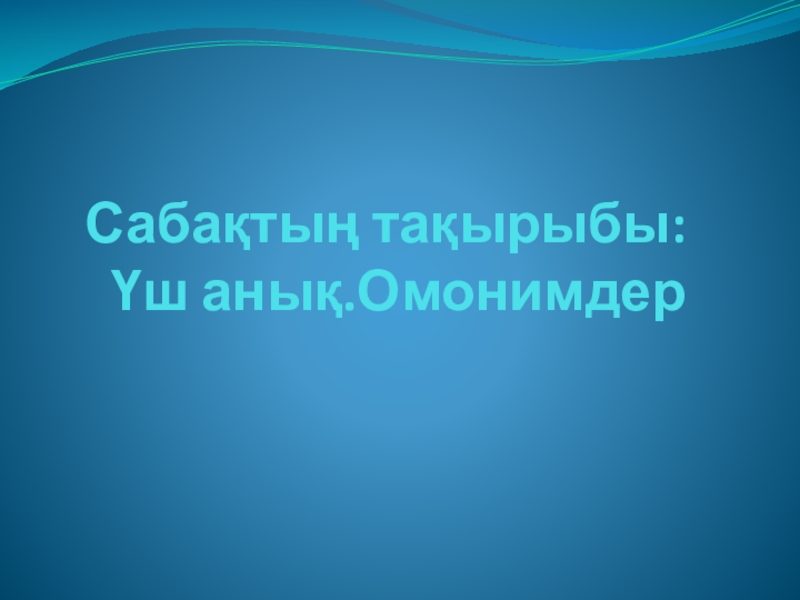 Слайд 1Сабақтың тақырыбы: Үш анық.Омонимдер