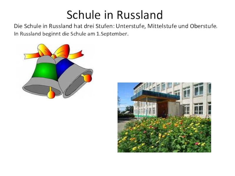 Die Schule in Russland hat drei Stufen: Unterstufe, Mittelstufe und Oberstufe.
