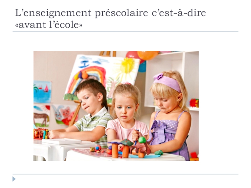 Слайд 5L’enseignement préscolaire c’est-à-dire «avant l’école»