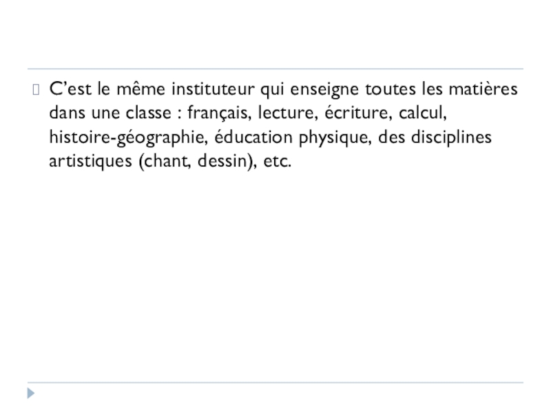 C’est le même instituteur qui enseigne toutes les matières dans une
