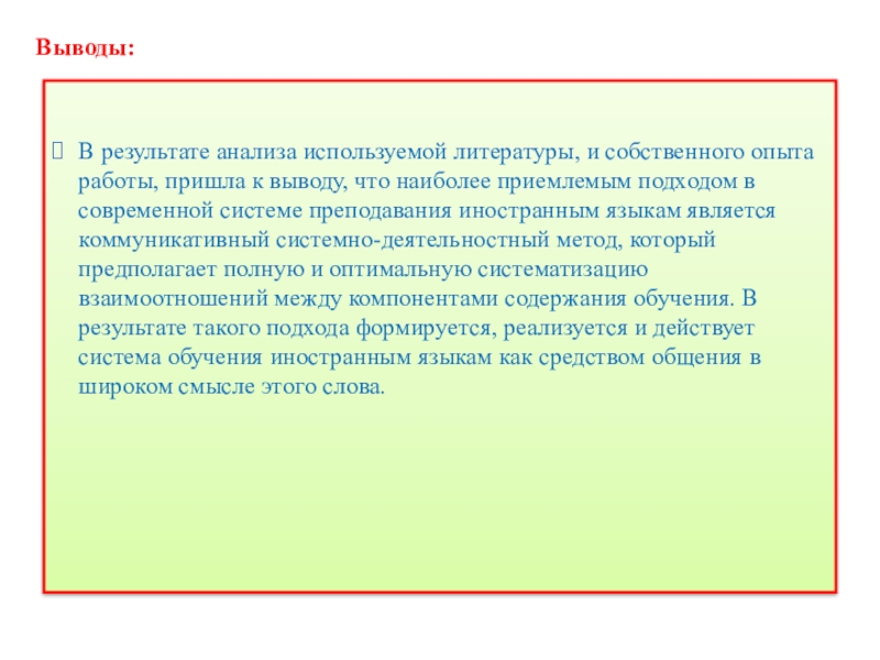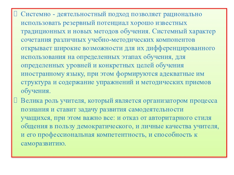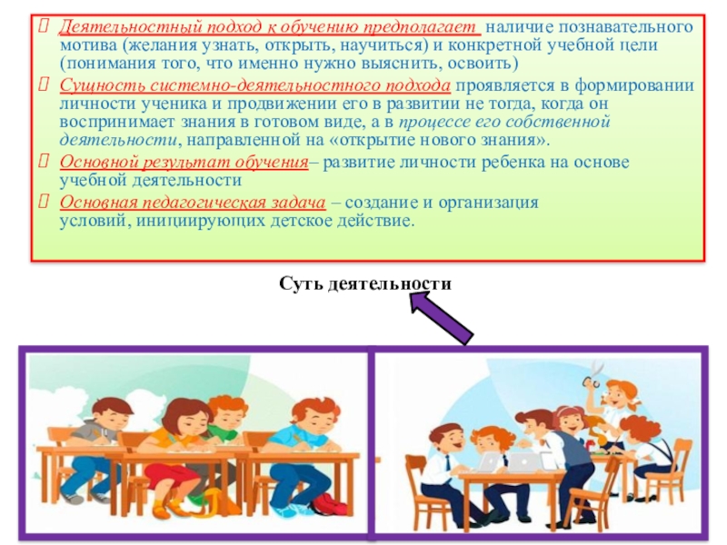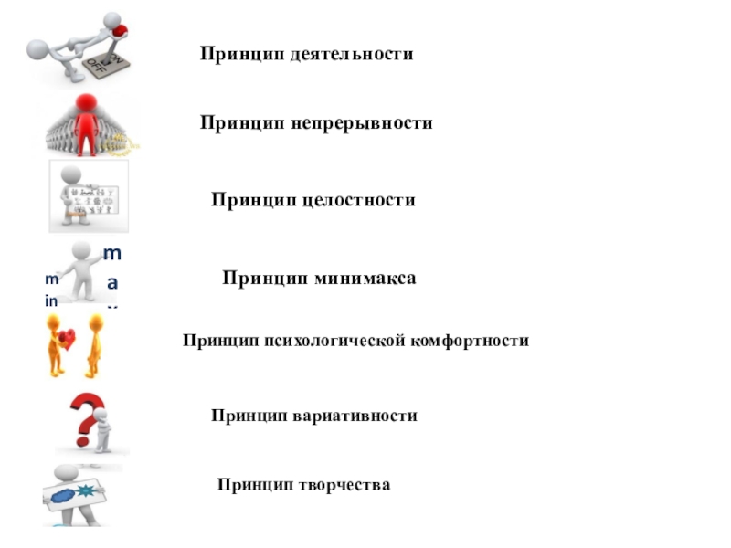 1) Принцип деятельности - заключается в том, что ученик, получая знания не в готовом виде, а добывая их сам, осознает при этом содержание и формы своей учебной деятельности, понимает и принимает систему ее норм, активно участвует в их совершенствовании, что способствует активному успешному формированию его общекультурных и деятельностных способностей, общеучебных умений.