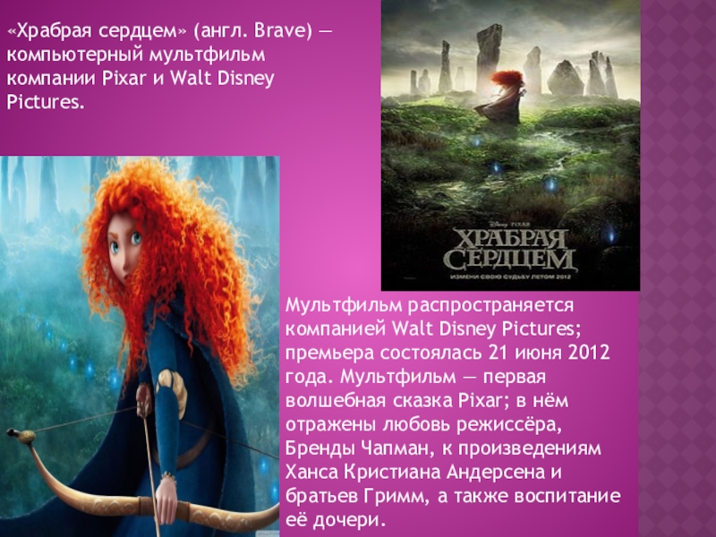 Мультфильм распространяется компанией Walt Disney Pictures; премьера состоялась 21 июня 2012 года. Мультфильм — первая волшебная сказка Pixar; в нём отражены любовь режиссёра, Бренды Чапман, к произведениям Ханса Кристиана Андерсена и братьев Гримм, а также воспитание её дочери.
