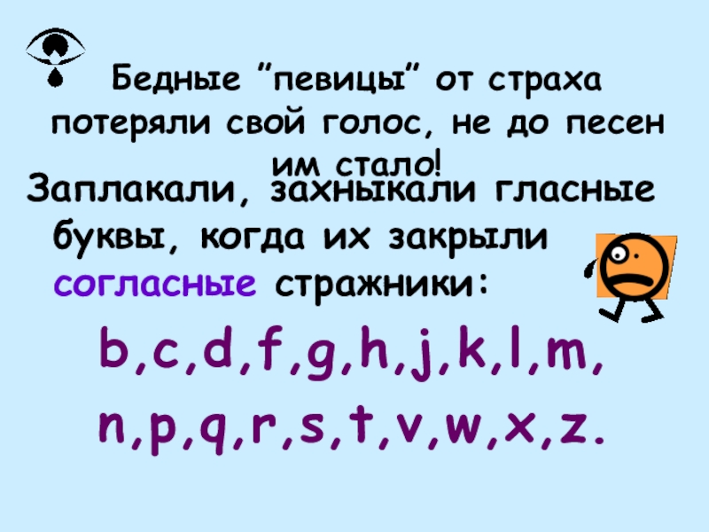 Заплакали, захныкали гласные буквы, когда их закрыли согласные стражники: