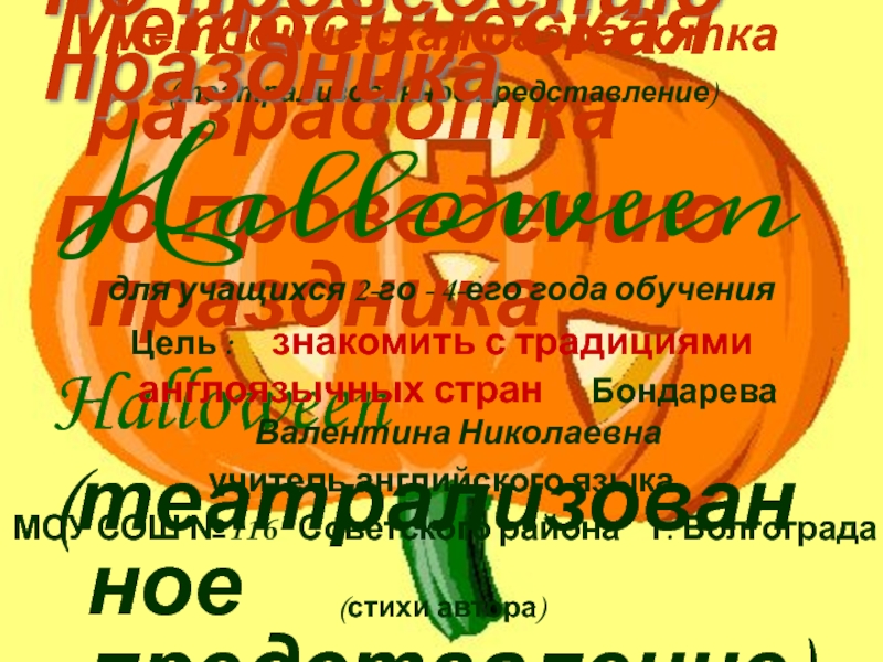 Цель : знакомить с традициями англоязычных стран Бондарева Валентина Николаевна
