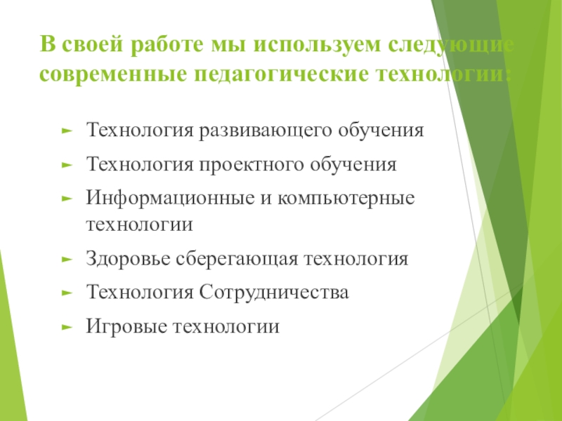 Слайд 5В своей работе мы используем следующие современные педагогические технологии: