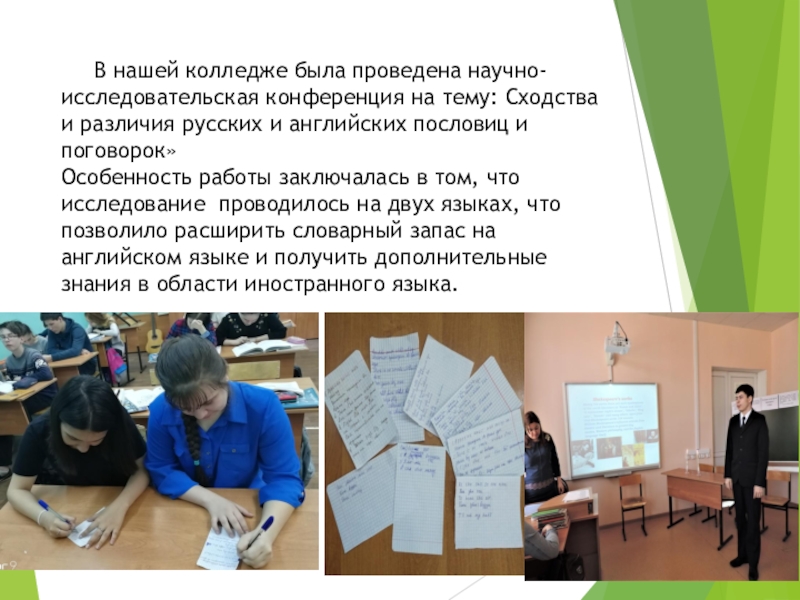Слайд 11 В нашей колледже была проведена научно-исследовательская конференция на