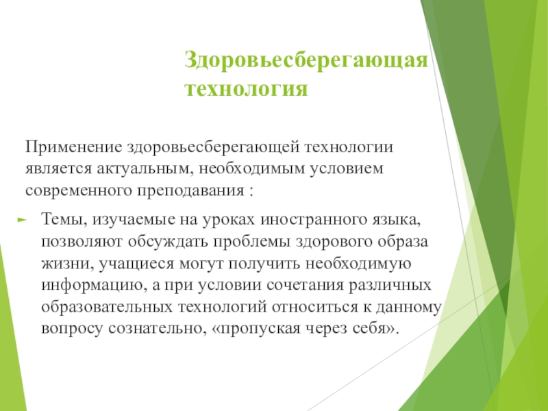 Применение здоровьесберегающей технологии является актуальным, необходимым условием современного преподавания