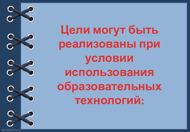 Слайд 3Цели могут быть реализованы при условии использования образовательных технологий: