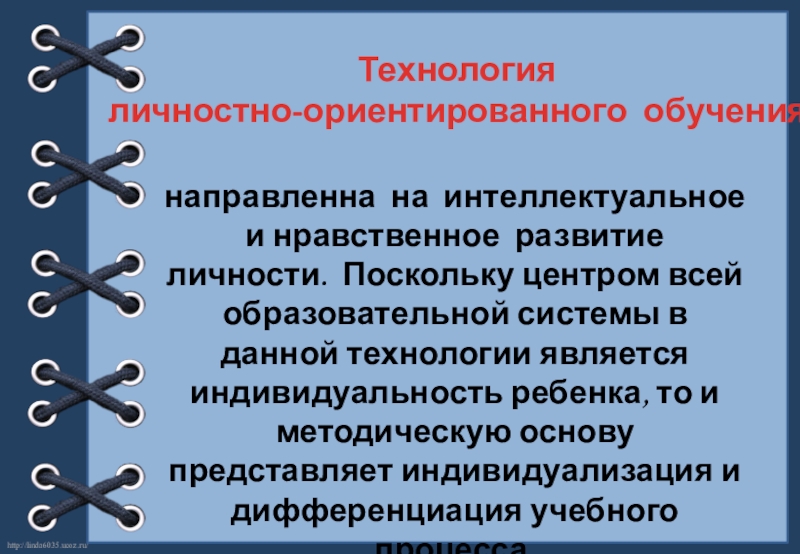 всей образовательной системы в данной технологии является индивидуальность ребенка, то и методическую основу представляет индивидуализация и дифференциация учебного процесса.