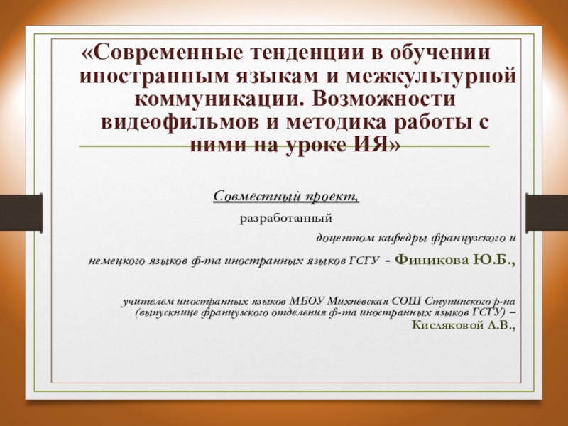 учителем иностранных языков МБОУ Михневская СОШ Ступинского р-на (выпускнице французского отделения ф-та иностранных языков ГСГУ) – Кисляковой Л.В.,