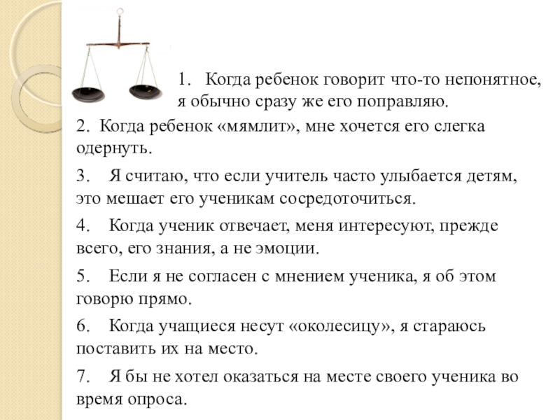 5. Если я не согласен с мнением ученика, я об этом говорю прямо.