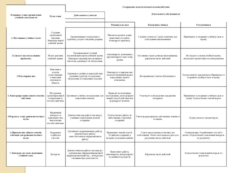 организуется поэтапная самостоятельная учебная, интеллектуально-познавательная и рефлексивная деятельность школьников;